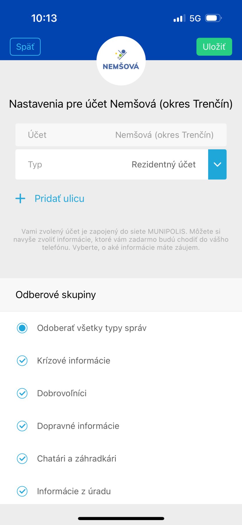 5. Vyhľadajte v aplikácii MESTO NEMŠOVÁ a nastavte si ho, ako REZIDENTNÝ ÚČET.