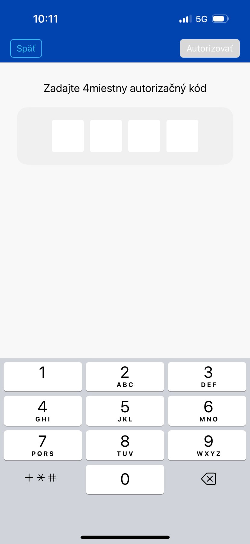 4. Zadajte 4-miestny kód, ktorý vám príde v SMS.