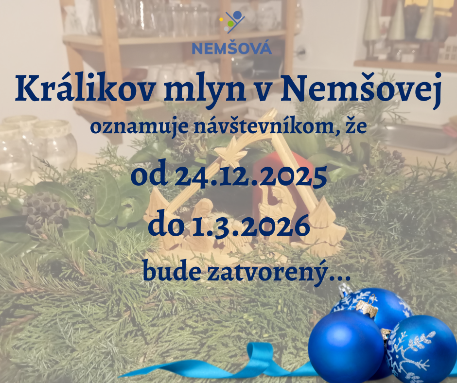 18.12.2025 Králikov mlyn v Nemšovej oznamuje...
