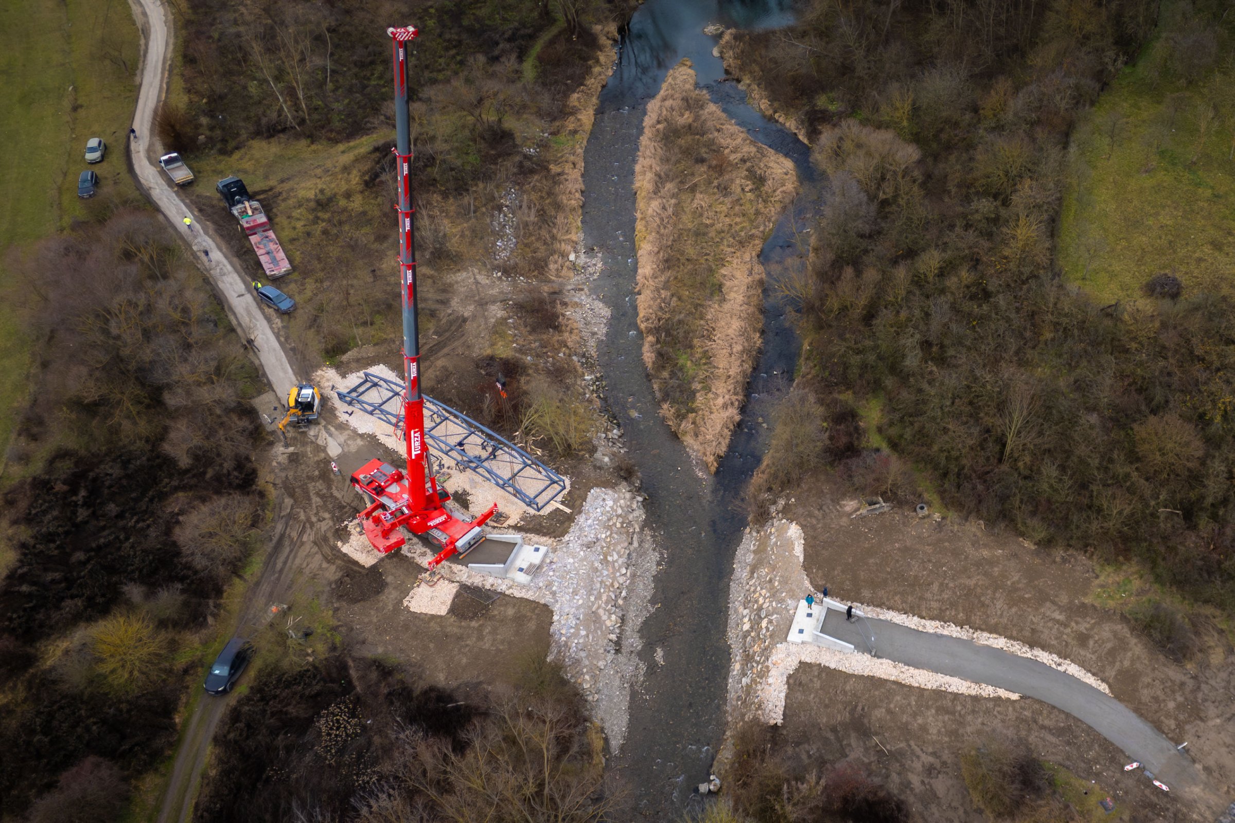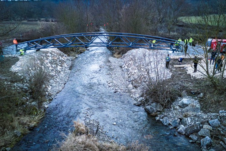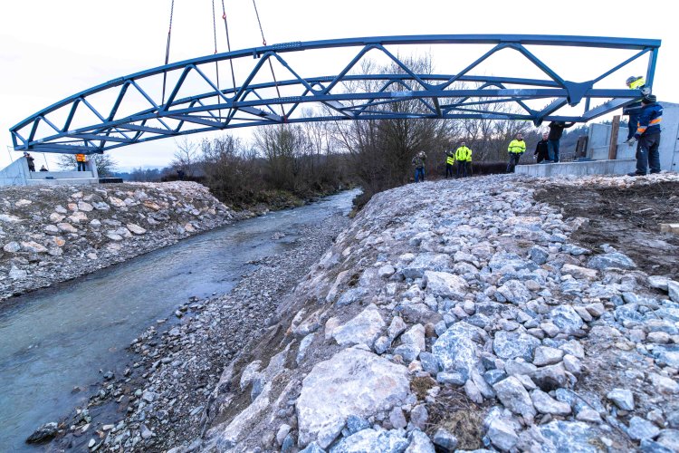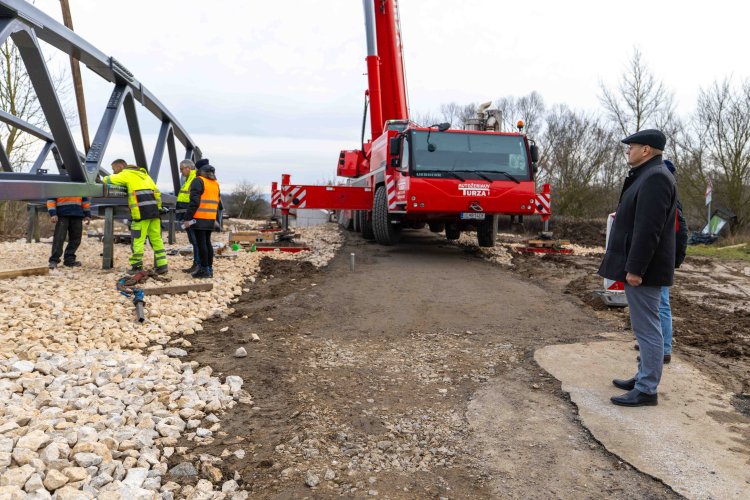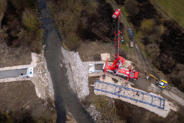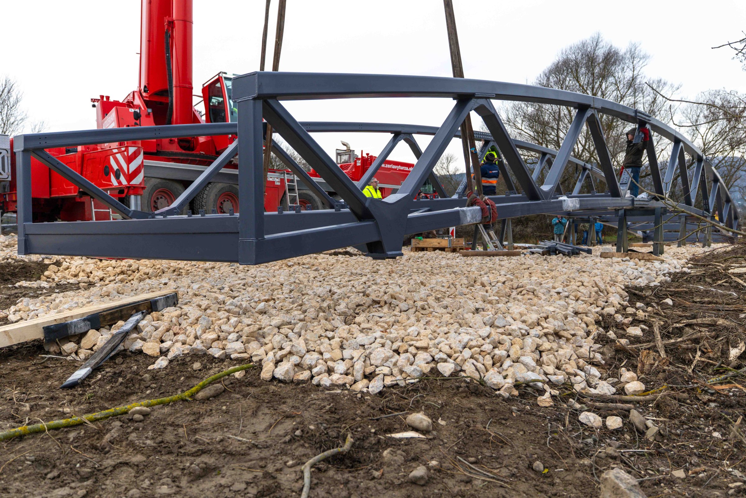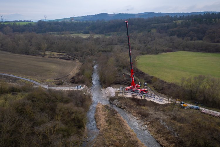 Lávka ako súčasť medzinárodnej cyklotrasy BEVLAVA...V utorok 16.12.2025 k nám postupne dorazili tri diely cyklomosta, ktorého výrobu zastrešila spoločnosť Cb-mont, s.r.o...V priebehu 7. týždňov zostrojili konštrukciu s dĺžkou 26,7 m a váhou 21 800 kg...