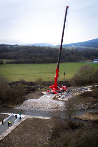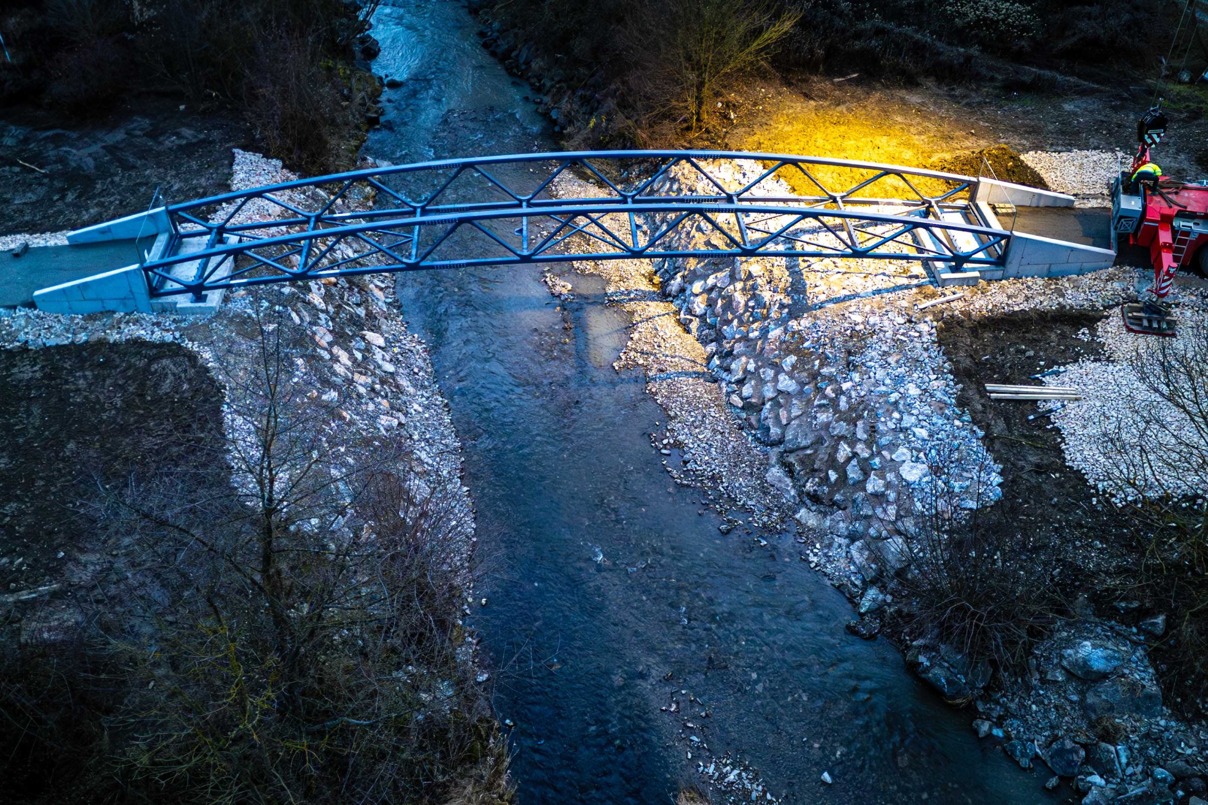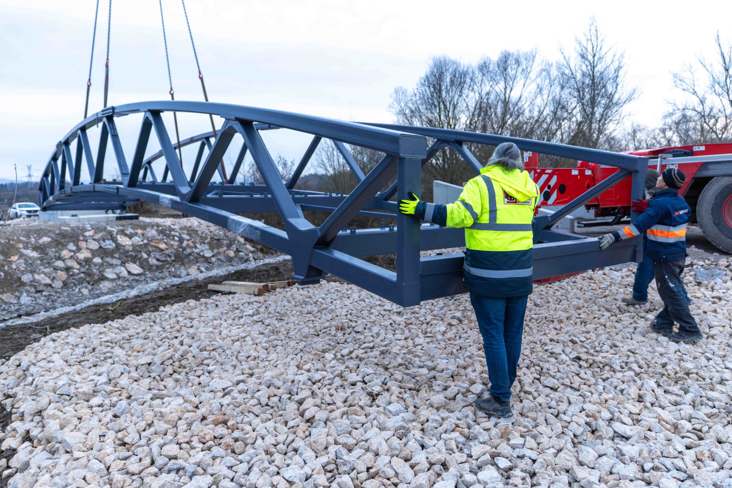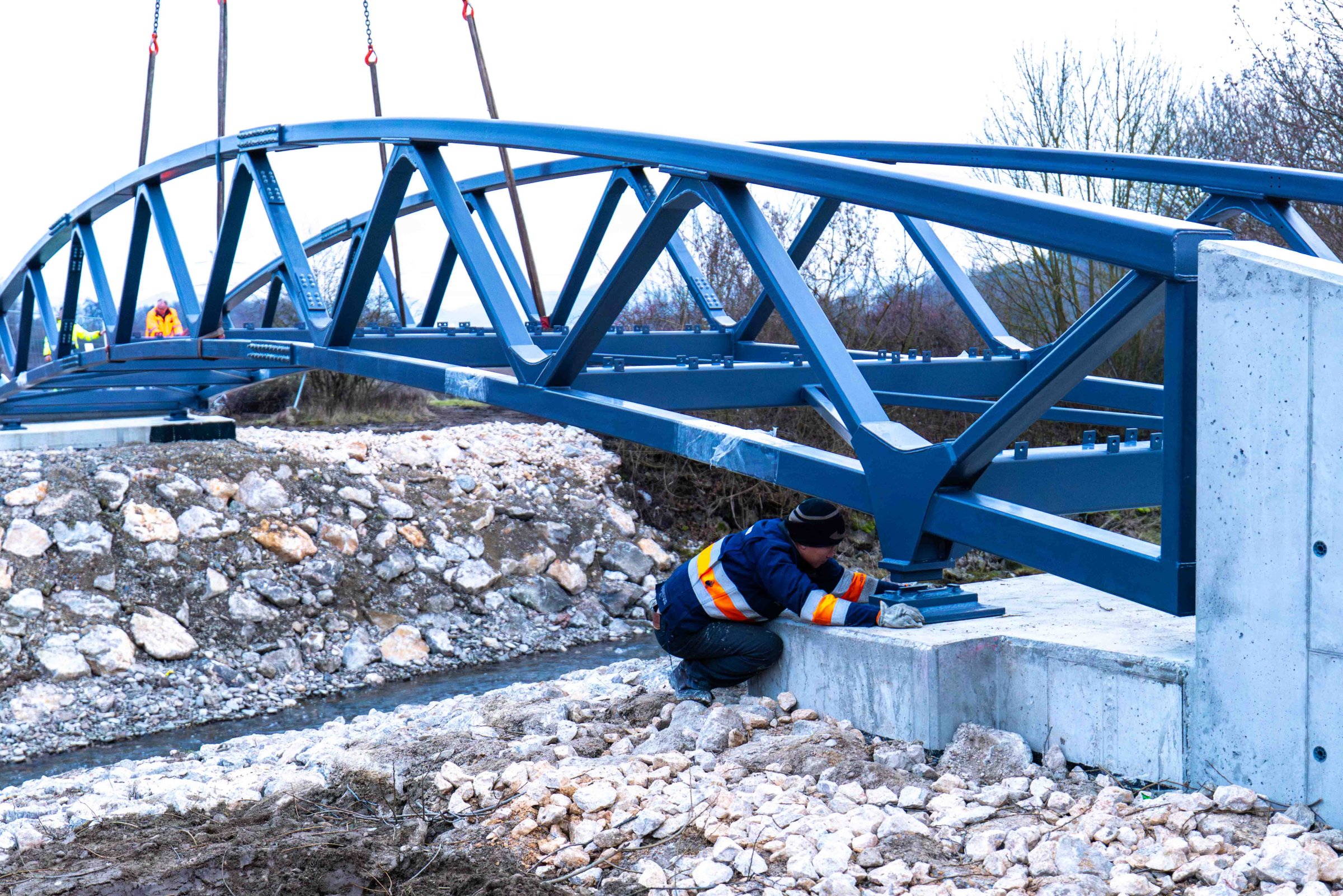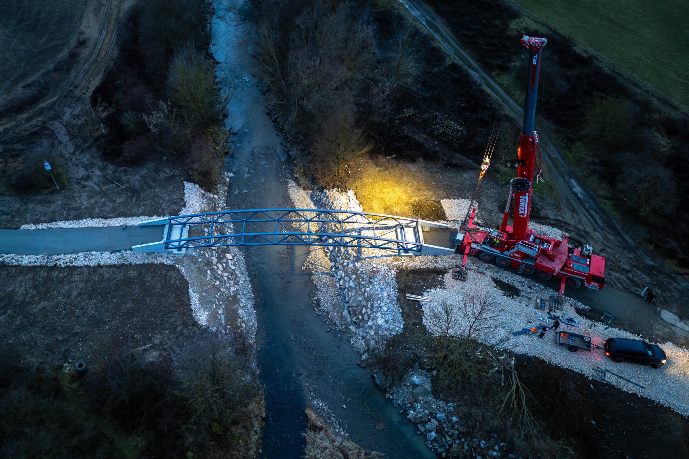 Lávka ako súčasť medzinárodnej cyklotrasy BEVLAVA...V utorok 16.12.2025 k nám postupne dorazili tri diely cyklomosta, ktorého výrobu zastrešila spoločnosť Cb-mont, s.r.o...V priebehu 7. týždňov zostrojili konštrukciu s dĺžkou 26,7 m a váhou 21 800 kg...