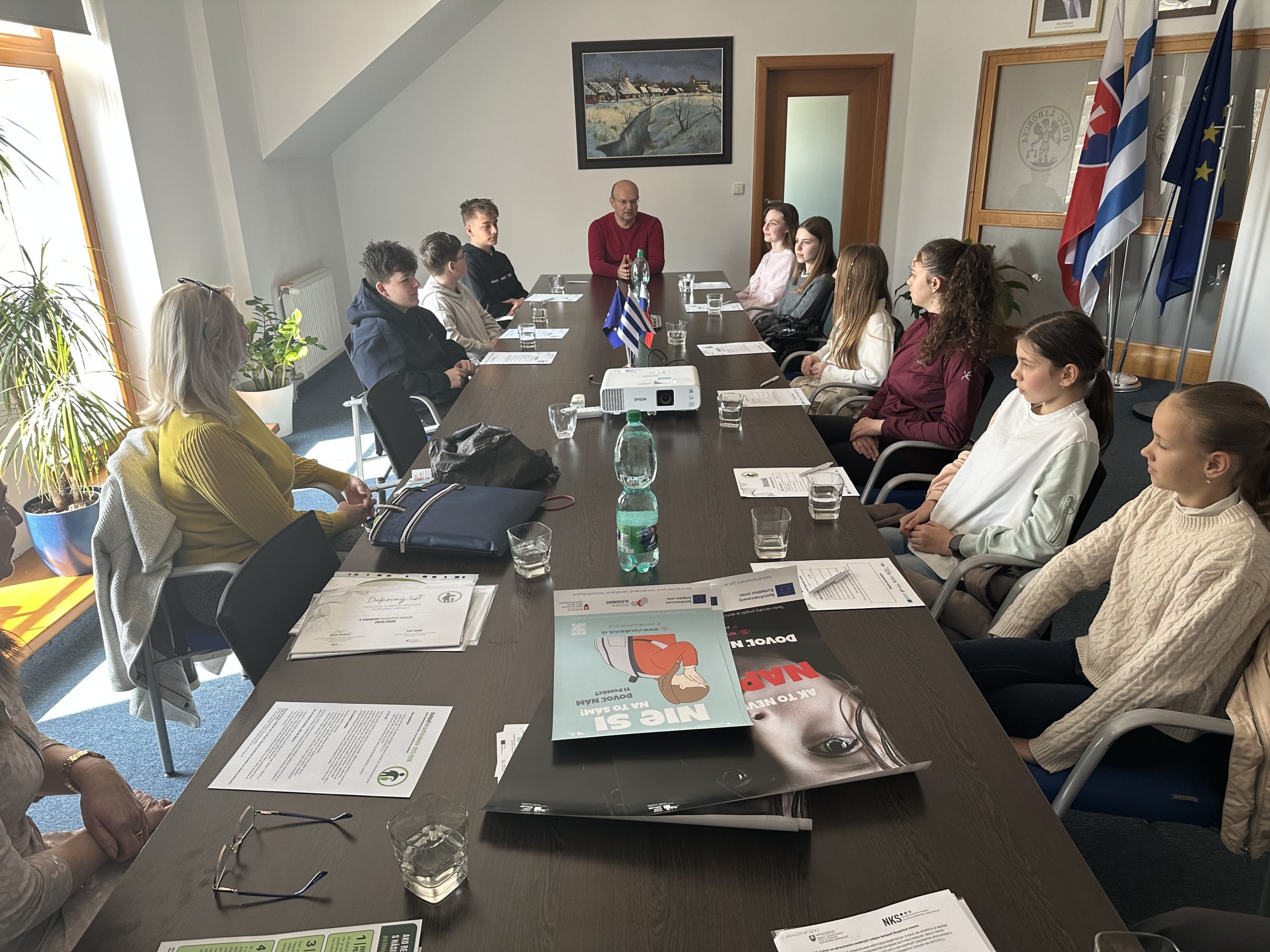 Na stretnutí boli žiaci oboznámení o možnostiach využitia pomoci a poradenstva zo strany zamestnanca mestského úradu, o ktorých majú ďalej informovať svojich spolužiakov a kamarátov...